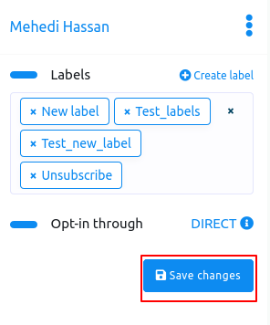 After you have selected labels in the Labels field, click on the save changes button to save the changes.